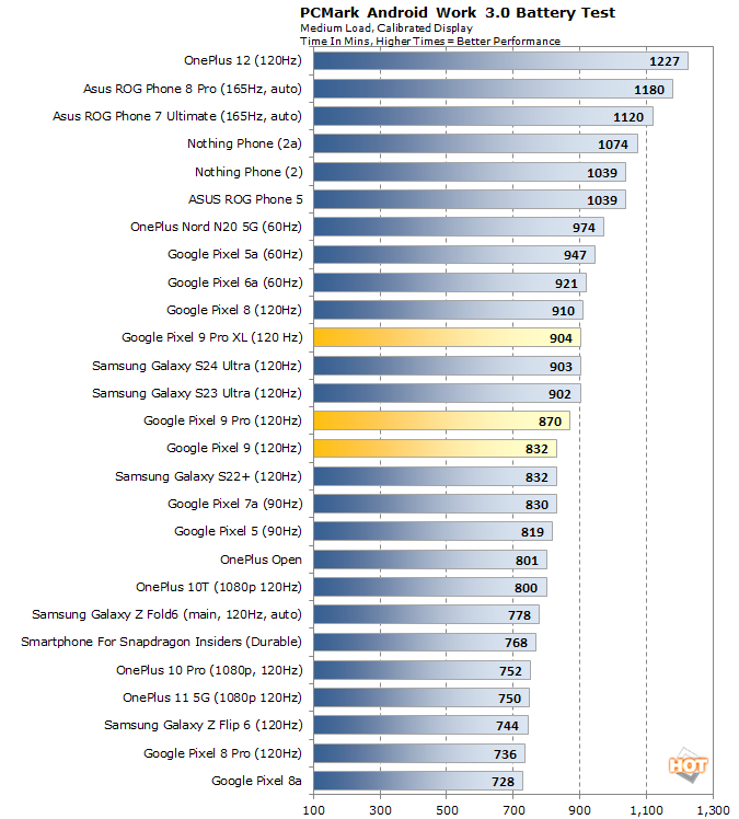 All three models will last through a single day without issue, even if you really hammer them. You should have plenty left in the tank at bedtime, but it would be difficult to make it through a second day with the Pixel 9 or Pixel 9 Pro. You might be able to get there with the Pixel 9 Pro XL if you're careful.In our battery life rundown test, the Pixels come out in the same range as other Pixel devices and flagship phones from Samsung. The Pixel 9 Pro XL does the best thanks to its substantially larger battery—it beats the 8 Pro by a considerable margin. Google has improved charging modestly this year. The Pixel 9 Pro XL can hit 37W with a compatible wired charger, which is within spitting distance of the S24 Ultra. The other two models top out at 27W, which is a bit on the slow side. The OnePlus 12 still leaves all these phones in the dust, though.